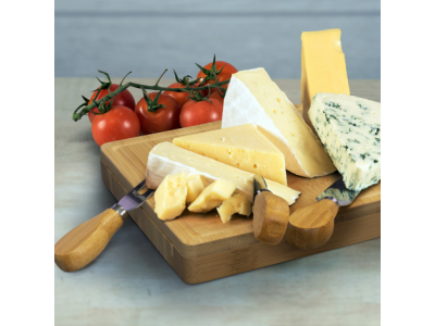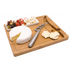 This eco-friendly cheeseboard is a stand-out. The beautifully-crafted bamboo board features a ceramic snack bowl and stainless-steel cheeseknife all supplied in a natural-coloured gift box. As this product is hand crafted, The Big Cheese may differ slightly in shape and size.