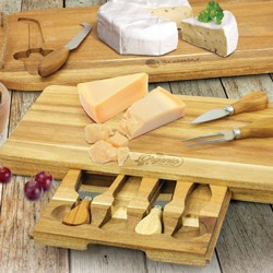 Luxury bamboo cheese board with a slate insert which can be removed for cleaning. It has two cheese knives and a cheese fork with their own compartments so they are always ready for use. The slate insert laser engraves to a natural etch and the cheese board is beautifully presented in a black gift box. Wood is a natural material which produces unavoidable...