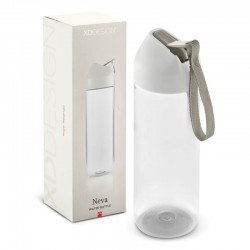 Timeless 450ml water bottle which has a secure screw on lid with a woven carry strap that acts as a quick release for the flip out drinking valve. It is manufactured from Tritan which is odour-resistant and BPA-free. Neva is beautifully presented in an XD gift box. This product is not dishwasher safe and handwashing is recommended.