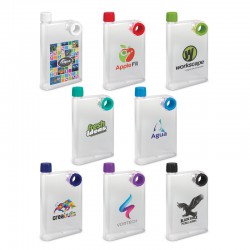 Futuristic 500ml water bottle which is shaped like a notebook with a secure screw on lid. It is manufactured from crystal clear PS which is BPA-free. The bottle is designed to slide easily into bags alongside books, laptops and folders etc. It can also be conveniently carried in one hand along with a tablet or a notebook. This product is not dishwasher...
