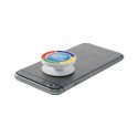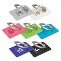 Slim phone grip that adheres securely to the back of a phone or phone case. It has a soft-touch plastic slider that moulds itself into a secure finger grip or a handy phone stand.