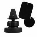 A quality plastic car air vent mobile phone holder with rubber cover and magnetic suction. Adjustable arm fits for all your mobile devices, easy to install and no tools required. It comes with 2 metal sheets and an instruction sheet.