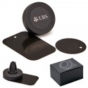This mount fits easily into most car vents and has a powerful magnet built in. Each mount comes with two adhesive mounting plates to attach to your smart phone, one circle (40mm d) and one rectangle 45mm w x 65mm h) shaped plate. Each mount engraves to showcase stunning mirror finish decoration. Individually boxed in black matte gift box with silver line...
