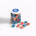 Corporate Coloured Humbugs in Plastic Jar 150G.