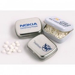 Promotional sweets tins in tin packs make a great branded conference gifts. At a lot of tradeshows and conferences, branded tins filled with sweets like mints or candies are fast becoming popular promo merchandise. Be sure to have a share of the pie with Promotional Product Experts collection of sweets in an assortment of custom containers including silver tins, screw cap jars and acetate drums. When printed to showcase your brand name or logo, these tins make it easy for you to promote your brand and boost visibility and recall.