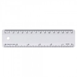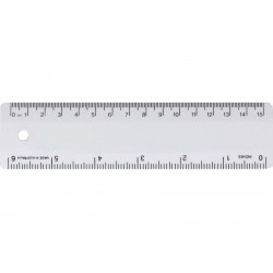 Solid 15cm plastic ruler with one side graduation in centimetres.