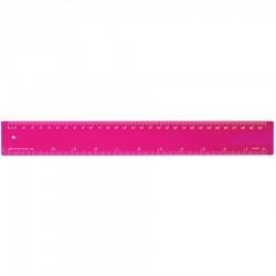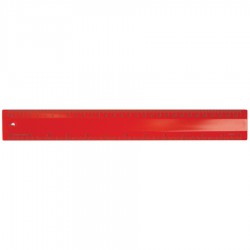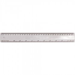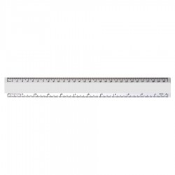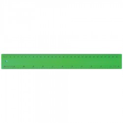 30cm plastic ruler with both sides graduations in centimetres and inches.