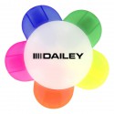 Colourful flower shaped highlight marker. White centre with Pink, Orange, Yellow, Green and Blue chisel shaped fluorescent highlight colours with matching caps.
