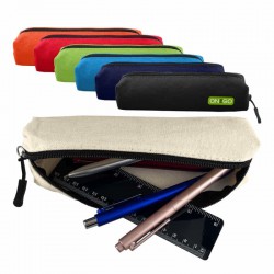 This trendy design pencil case is manufactured from 12oz cotton canvas fabric in a tube shape, it also can be used as a cosmetic bag, comes with a black zip closure and a large printing area, a great promotional product for school, office and cosmetic industry.