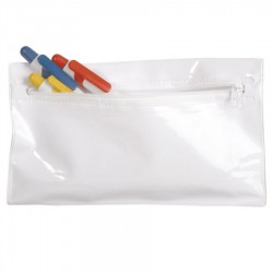 Clear PVC case with white back & zip closure. Use to hold stationery, kids items, cosmetics, first aid items, medications, sample collections, labels, coupons and computer cables.