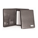 Quality leather outer - leather look inner, A4 lined pad - 50 pages, Dual powered calculator, 6 card holder, Inner storage sleeve and pen holder, Full zipper, Metal badge, Pen not included.