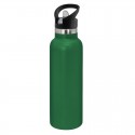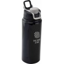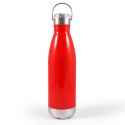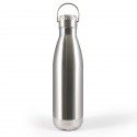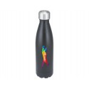 500ml BPA free vacuum insulated stainless steel double wall drink bottle, high quality rubberized finish that is extremely comfortable to hold, and laser engraves to natural silver colour, has a secure screw on lid with carry handle and flip out drinking nozzle with drink straw. It is not dishwasher safe, handwashing is recommended.