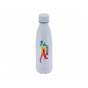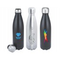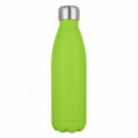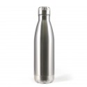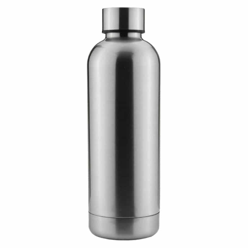 Trendy design of 500ml BPA free stainless steel vacuumed double wall drink bottle with powder coated matt finishing, made of 304 grade stainless steel, high quality leak proof with a silver stainless screw on lid, engraves to a natural silver etch colour. It keeps drinks cold for 24 hours or hot for up to 12 hours, handwashing is recommended.