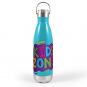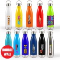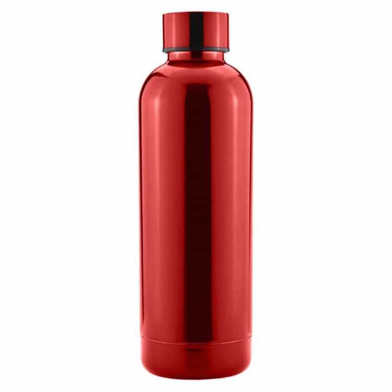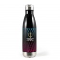 Trendy design of 500ml BPA free stainless steel vacuumed double wall drink bottle with stunning shiny UV lacquer finishing, made of 304 grade stainless steel, high quality leak proof with a matching stainless screw on lid, engraves to a natural silver etch colour. It keeps drinks cold for 24 hours or hot for up to 12 hours, handwashing is recommended.