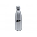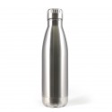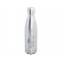 Trendy design of 500ml BPA free stainless steel vacuumed double wall drink bottle with shiny glossy metallic finishing, made of 304 grade stainless steel, high quality leak proof with stainless screw on lid, engraves to a natural silver etch colour. It keeps drinks cold for 24 hours or hot for up to 12 hours, handwashing is recommended.