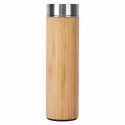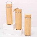 Elegant slim design 450ml stainless steel vacuum double wall drink bottle with filter, featuring an eco-friendly sustainably sourced natural bamboo outer wall. It has an option of 3 type of lids: no handle, rope handle, and steel wire handle. It is leak-proof and can keep hot for at least 4hrs-8hrs and cold for 24hrs. The inner wall is 304 food grade...