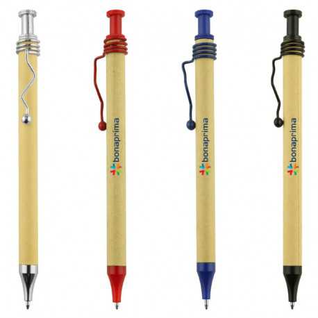 To promote your business with a difference, this recycled cardboard paper pen will reflect on the standpoint of your corporate as a modern business concerning about the environment. Natural colour (may vary) barrel and plastic coloured trim, click action with plastic cross-type German manufactured black ink refill, 1200 meters writing distance, tungsten...
