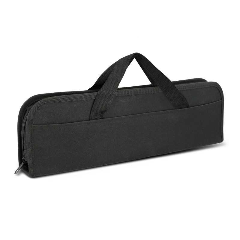 Heavy duty padded 600D Polyester carry bag, Includes, Stainless steel cutlery set for 6; Silicon marinade brush; BBQ fork, spatula, and tongs; Two large knives; Bottle opener & Bread board.