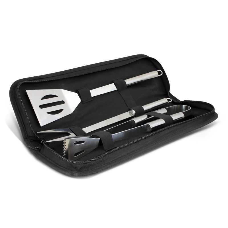 Love entertaining? Then youll love the entertainer BBQ Set. Supplied with quality Stainless Steel spatula, tongs and fork and presented in a designer aluminium carry case.