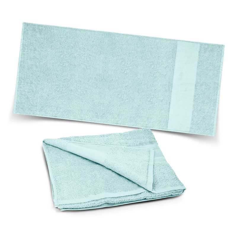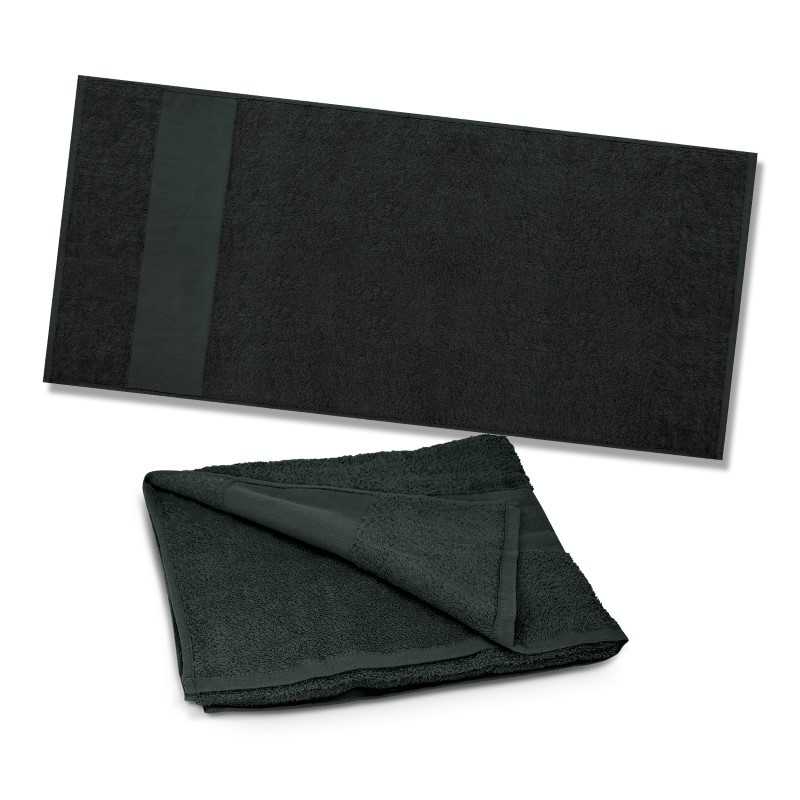 Compact 120cm x 60cm towel which is manufactured from soft 350gsm cotton terry towelling. It has a smooth fret area for branding.