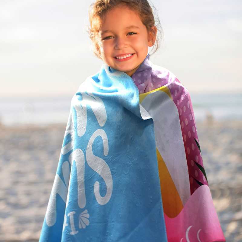 Vibrant extra-large beach towel with stunning edge-to-edge full colour sublimation print. This 1550mm x 800mm beach towel has a soft 190gsm polyester crystal fleece surface and an absorbent 230gsm cotton terry towel backing, with overlocked edges for added durability.
