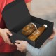 Flask Gift Set with Two Stainless Steel Shot Cups and One 265mlStainless Steel Flask Wrapped in Faux Black Leather. Also includes One Funnel and One Bottle Opener Tool. Displayed in Two Piece Black Gift Box. Each Gift Box Protected with White Paper Sleeve During Shipping.