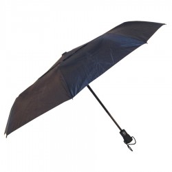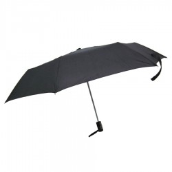 Whilst sheltering their partners from the elements, this 55cm umbrella will expose your clients promotional logo to a wide audience with style and practicality. 55cm Folding Umbrella*Manual open*3 section black electroplated frame & tips*Black rubber coated cylindrical handle with nylon matched square*190T polyester*Black metal tips