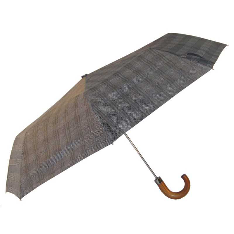 Classic-styled folding umbrella with engraved wooden handle and auto open function.