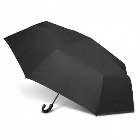 Whilst sheltering their partners from the elements, this 55cm umbrella will expose your clients promotional logo to a wide audience with style and practicality. 55cm Folding Umbrella*Manual open*3 section black electroplated frame & tips*Black rubber coated cylindrical handle with nylon matched square*190T polyester*Black metal tips