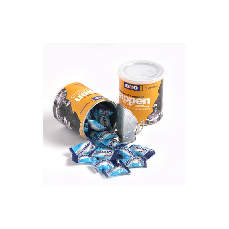 If you're considering the 33 Mentos Packed in Pull Cans as a branded, printed, or decorated promotional item for your corporate gift needs, please contact us to request a sample. Our team will do their best to accommodate your request.