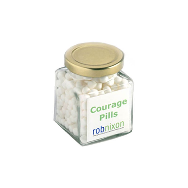 Small Square GlassJar Filled With Chewy Mints 100G