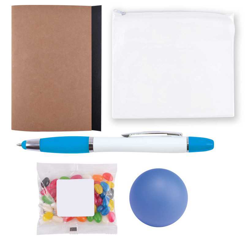 Available Colours: Notebook: Natural;Jelly Beans: Assorted;Pencil Case: Clear;Stylus Pen: Yellow|Orange|Red|Pink|Purple|Light Green|Light Blue|Dark Blue|Black;Ball: Off White|Yellow|Orange|Red|Maroon|Light Green|Teal|Blue