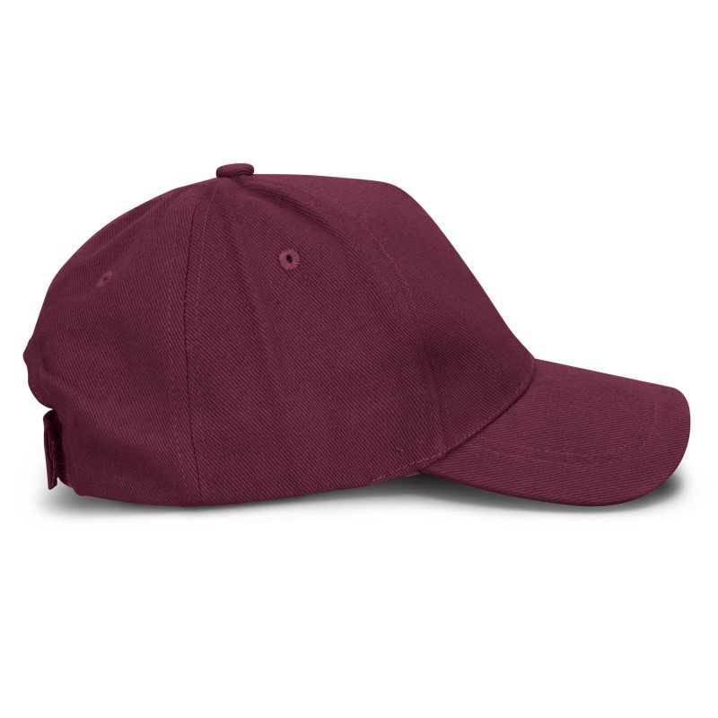 Premium quality structured five panel cap which is manufactured from 100% cotton. It features a coloured trim of your choice, embroidered eyelets, a pre-curved peak, a sweat band and an adjustable Velcro closure which allows one size to fit most people.
