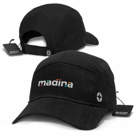 Premium quality structured five panel cap which is manufactured from 100% cotton. It features a coloured trim of your choice, embroidered eyelets, a pre-curved peak, a sweat band and an adjustable Velcro closure which allows one size to fit most people.