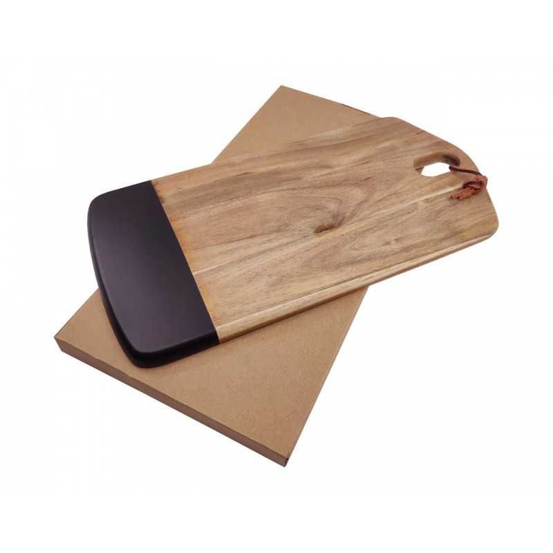 Stylish serving board made from natural acacia wood, presented in a natural gift box with a Keepsake branded sleeve.