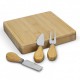 Tasteful bamboo cheese board which swivels open to reveal two cheese knives and a cheese fork neatly stored inside. Wood is a natural material which produces unavoidable variances in the grain pattern, colour and branding.