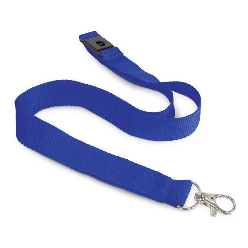 20mm wide polyester lanyard with a metal clip and a safety clip. It can be branded in one colour on one side.