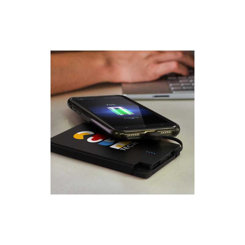 The Olo PU Leather Powerbank is a first-class item, just waiting to transport your brand to the next level of elegance. Completely made of black PU leather it looks the part, while still being slimline and light, making it easy to carry around with you. Simply charge up the 4000mAh powerbank and connect your mobile phone via a charging cord to powerup...