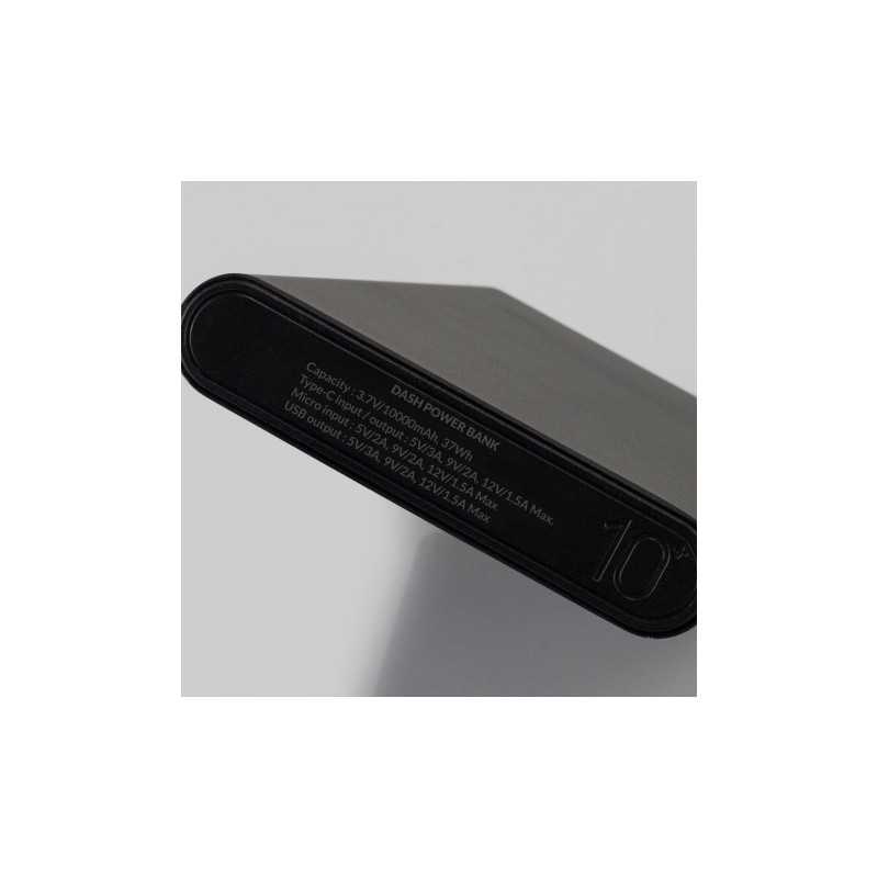 Impressive 10,000mAh power bank that delivers up to 18W PD quick charge power output. Capable of charging two devices at once, Dash has Micro-B and Type-C inputs and USB-A and Type-C outputs and features an LED power gauge. This high-performance power bank is presented in a printed black gift box.