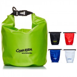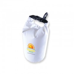 PVC coated tarpaulin, 5 Litre capacity. Water resistant dry bags keep your items safe and dry. Each bag features roll-down closure which creates a watertight seal. Great for outdoor activities, like camping and wet-weather trips. Imprint one side only, due to seam on reverse side. Please note a standard digital transfer CMYK cannot be exactly PMS matched.