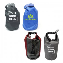 PVC coated tarpaulin, 2.5 Litre capacity. Water resistant dry bags keep your items safe and dry. Each bag features roll-down closure which creates a watertight seal. Great for outdoor activities, like camping and wet-weather trips. Imprint one side only, due to seam on reverse side. Each bag has a clear window with internal Smartphone pocket so that you...