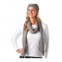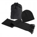 Luxuriously warm scarf and beanie set which is manufactured from knitted acrylic yarn and presented in a cotton drawstring bag. The scarf has trendy tassles and the beanie is available in one size which will fit most people.