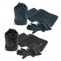 Superb scarf and gloves set which is manufactured from warm, non-pilling polar fleece and is presented in a matching drawstring bag. The gloves are available unbranded in two convenient sizes and can be clipped together when not in use.