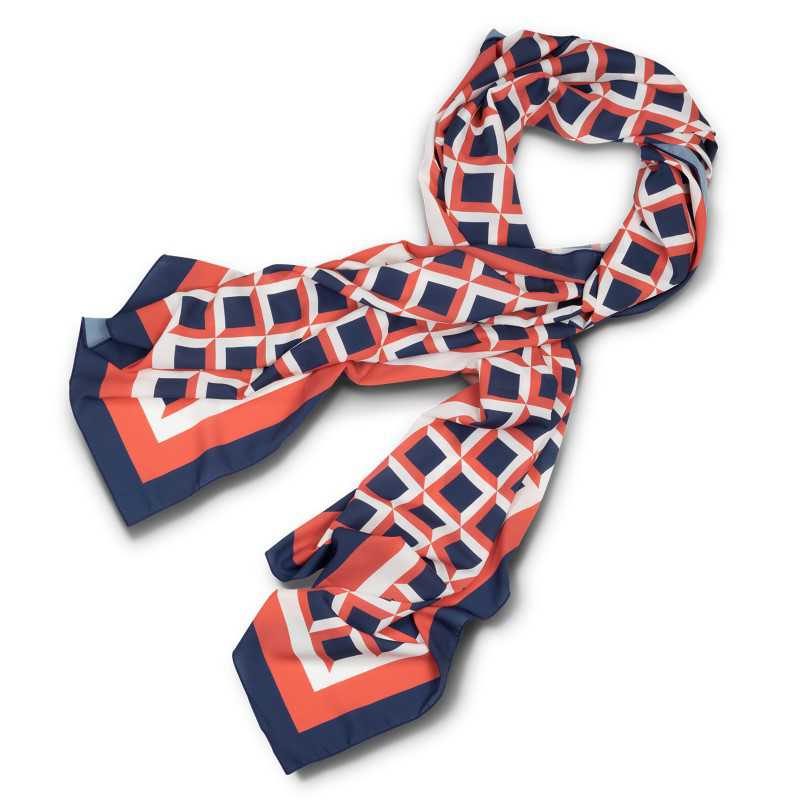 Luxury rectangle scarf with lock finished edges manufactured from 70gsm crepe fabric. Berlin can be branded edge to edge in spot colours or full-colour print. The lock edging is closely matched with the colouring in the scarf. A production lead time of 35 working days applies to this product by air freight and larger orders can be sea freighted on request...