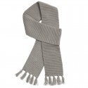 Warm knitted acrylic scarf with trendy stripes and tassles.