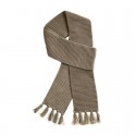 Stylish scarf with tassles which is cable knitted from acrylic yarn.