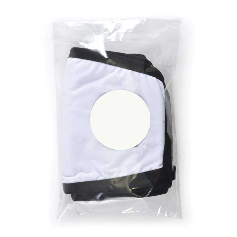 Polyester, cotton and spandex face mask thats washable and reusable time and again. Each mask features 3 layers of soft comfortable fabric; 2 layers of black cotton and spandex material comprising 95% cotton and 5% spandex then an outer layer of white polyester which can be custom decorated with almost any design. Mask features a squeeze tight, secure...