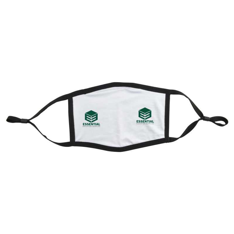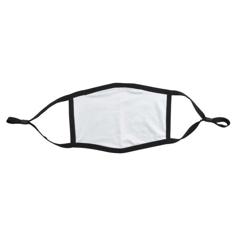 Polyester, cotton and spandex face mask thats washable and reusable time and again. Each mask features 3 layers of soft comfortable fabric; 2 layers of black cotton and spandex material comprising 95% cotton and 5% spandex then an outer layer of white polyester which can be custom decorated with almost any design. Mask features a squeeze tight, secure...