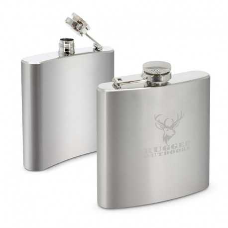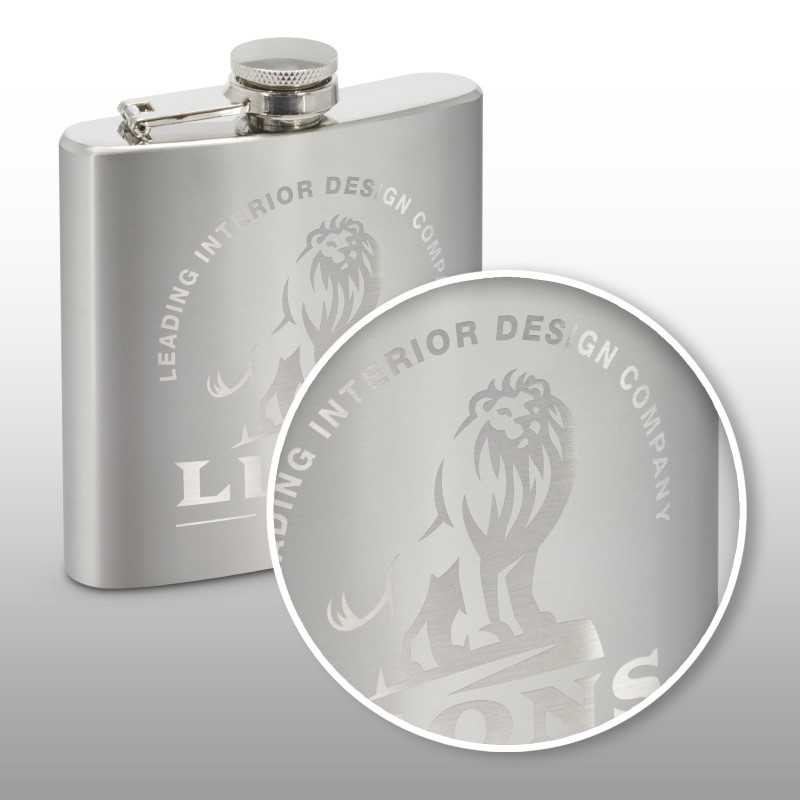 Crafted from brushed stainless steel, this 6oz hip flask engraved with your logo makes the ideal gift.