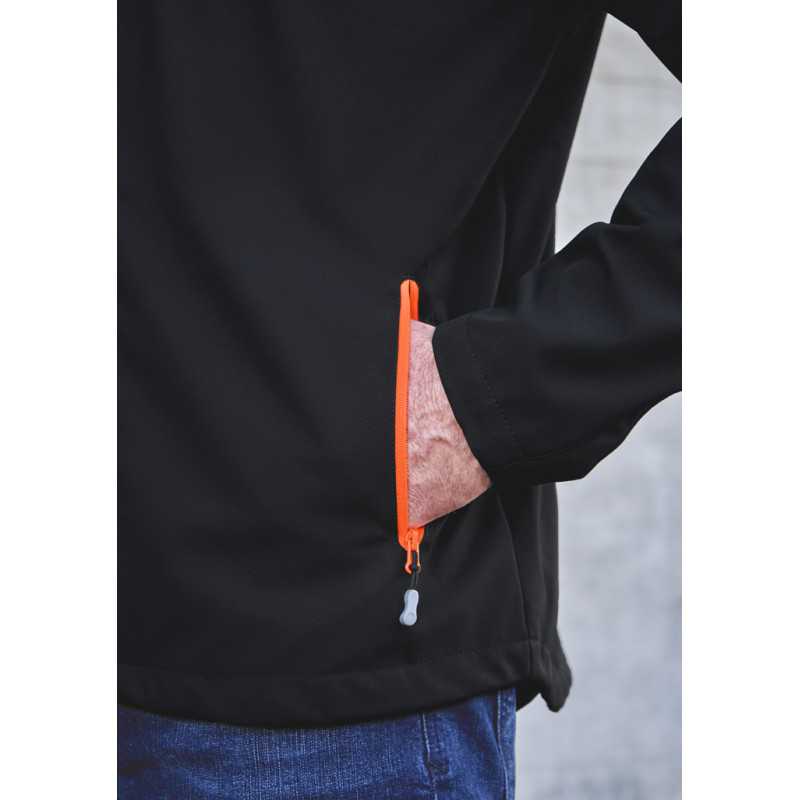 Unisex padded softshell jacket with detachable hood. Pre-curved sleeves, adjustable drawstring at bottom hem and Velcro adjustable cuffs.|Front pockets and chest pocket with zippers and one mesh pocket.|The lining on the hood and at the base of the jacket can be opened for ease of decoration.|Product Material: 100% polyester with TPU membrane. Shell:...